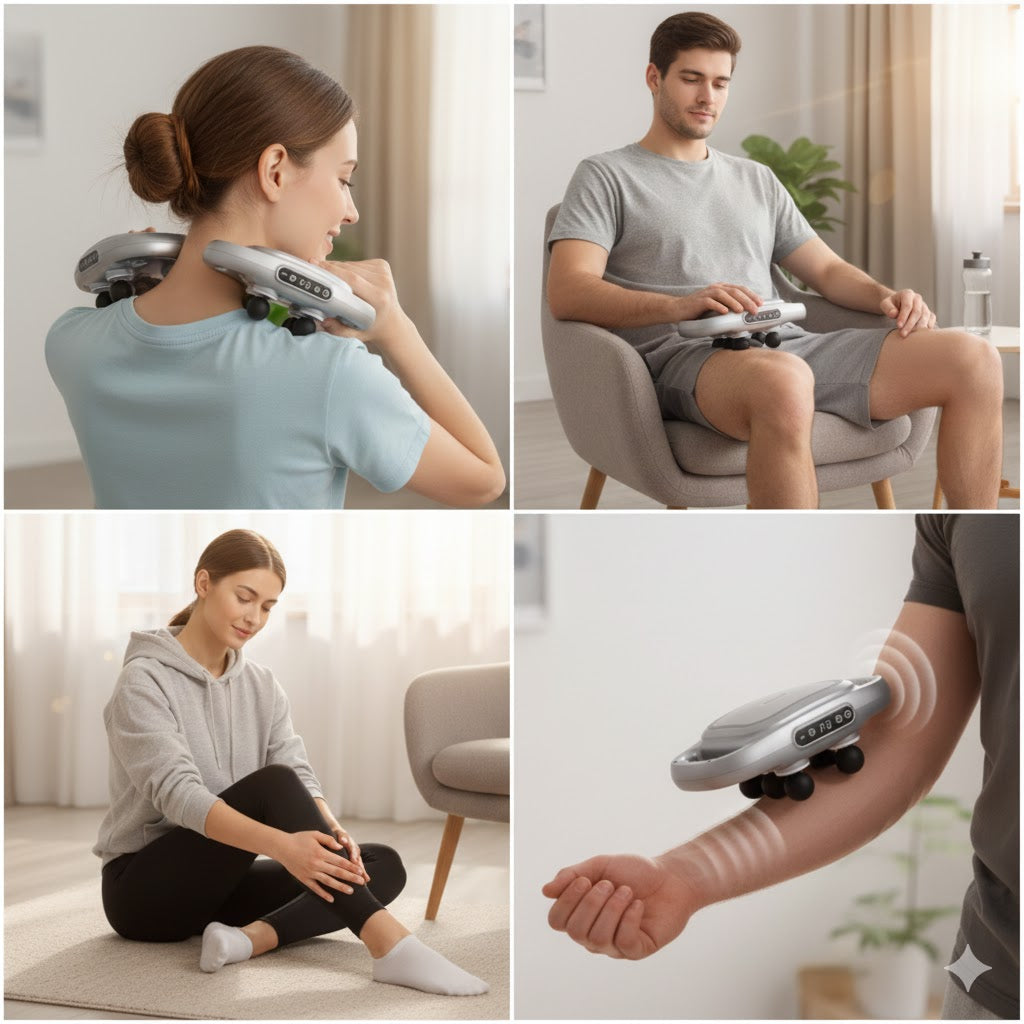 You can use it on the back, waist, shoulders, arms, thighs, and calves. The six-head layout helps cover wide areas quickly. It is suitable for both light relaxation and deep muscle activation. Avoid using it on bones or sensitive areas.